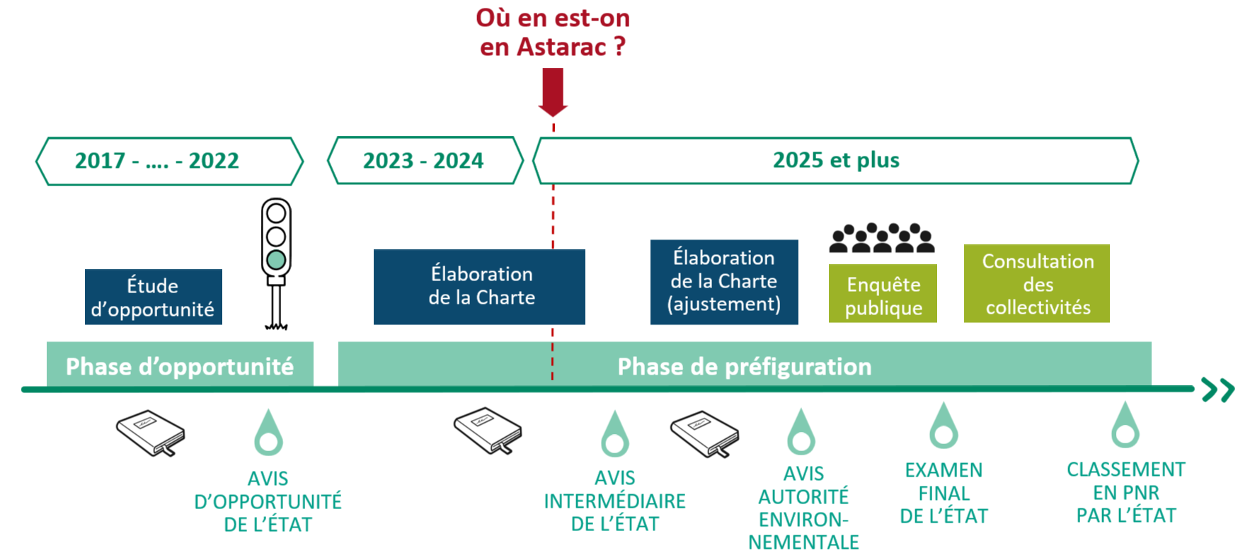 Le projet est désormais entré dans sa phase de préfiguration. Cette nouvelle étape débutée en 2023 s’étendra jusqu’à la fin de l’année 2024. Cette période est fondatrice et mobilise pleinement les acteurs du territoire depuis plusieurs mois. Il s’agit de définir collectivement la feuille de route pour l’avenir de l’Astarac : la charte du futur Parc naturel régional.