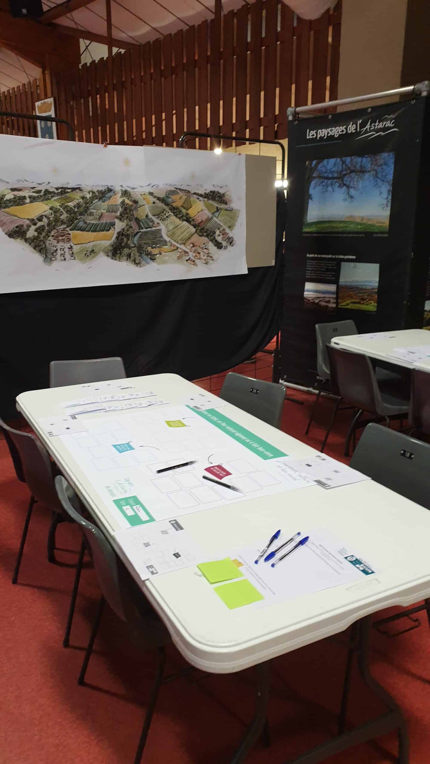 Le paysage était le fil conducteur de cette journée qui fut riche en idées et en perspectives. Une fresque paysagère représentant les paysages de l’Astarac a servi de support de travail.
